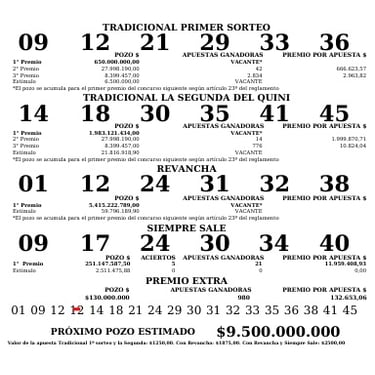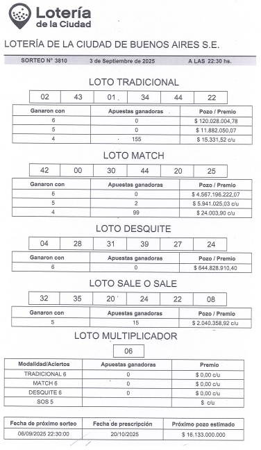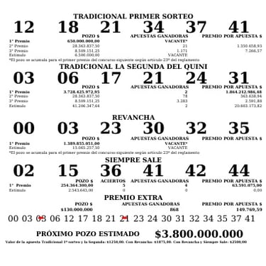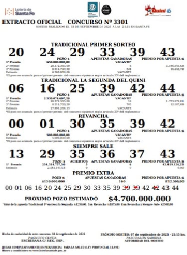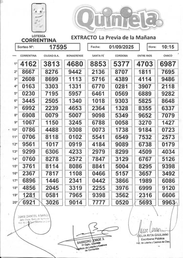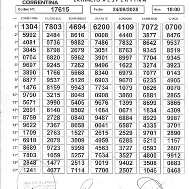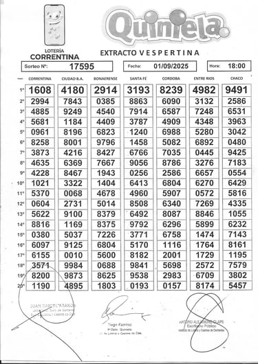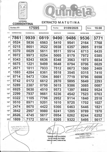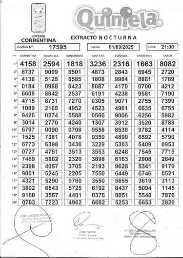 Resultados de Quiniela y Otros Juegos 24/09/2025