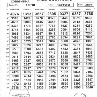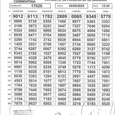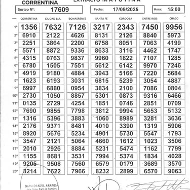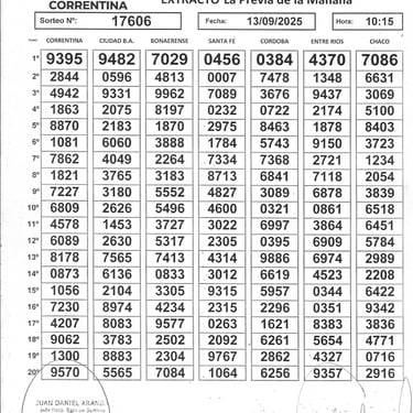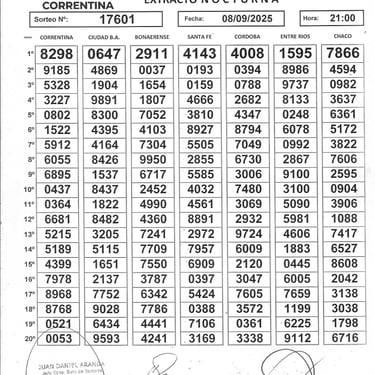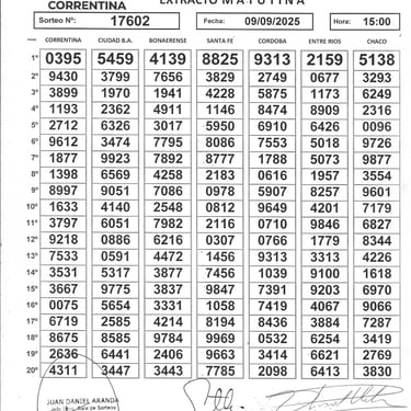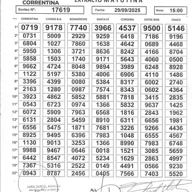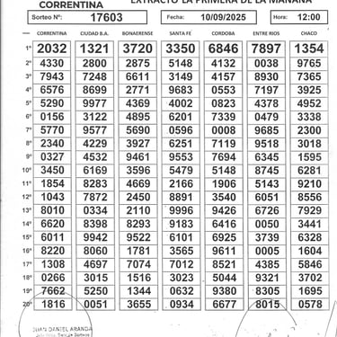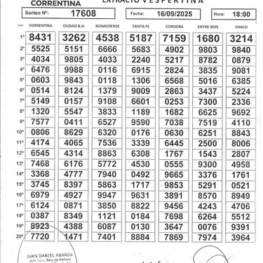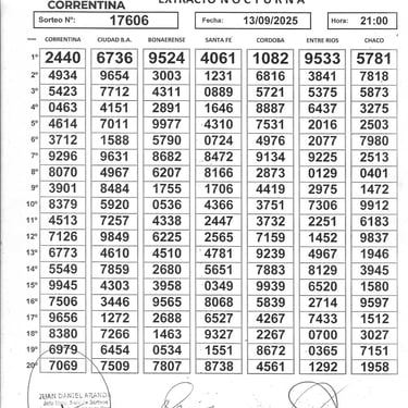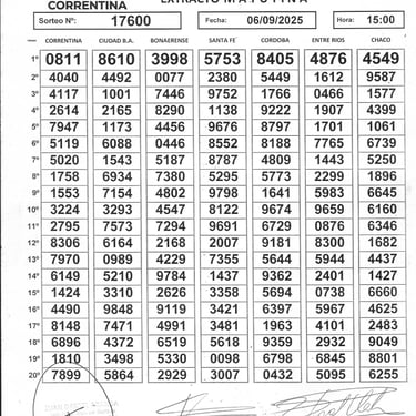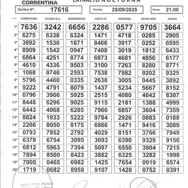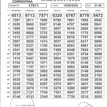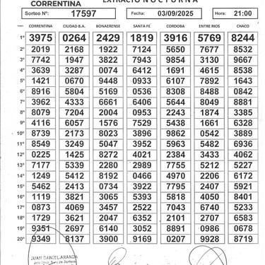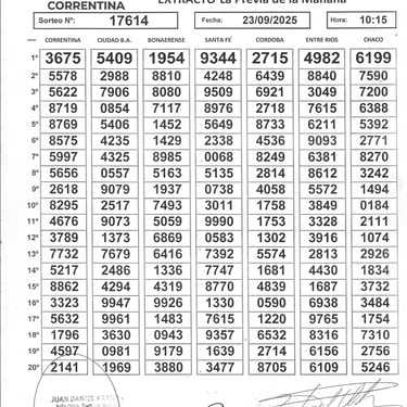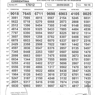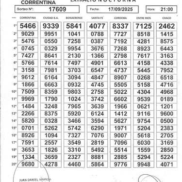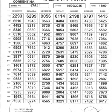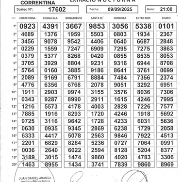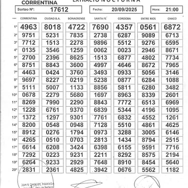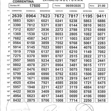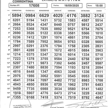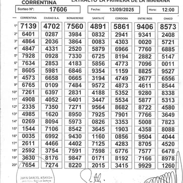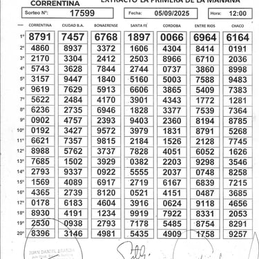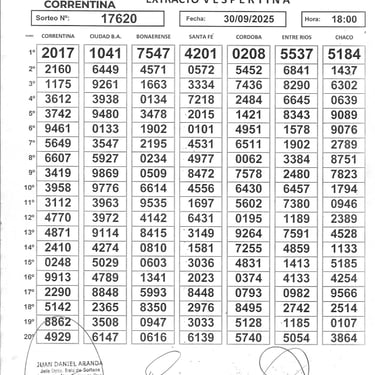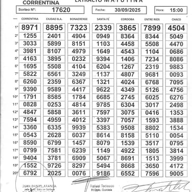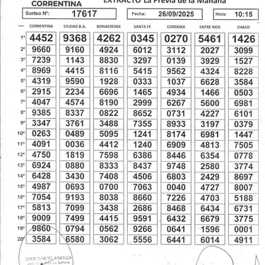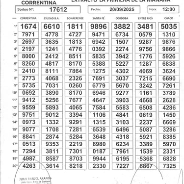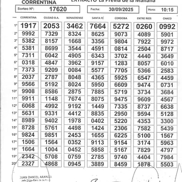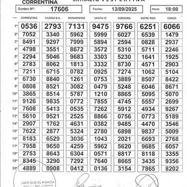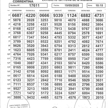 Resultados de Quiniela y Otros Juegos 20/09/2025