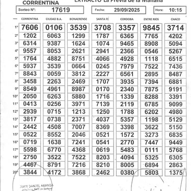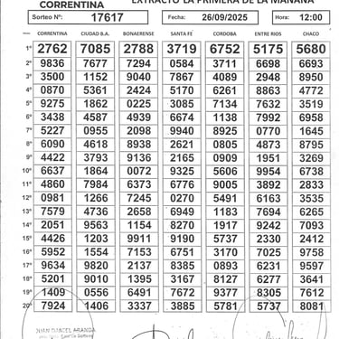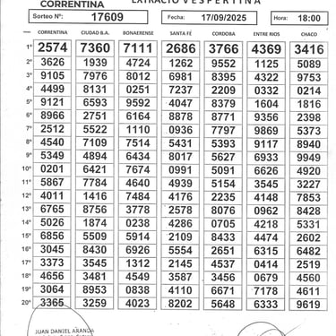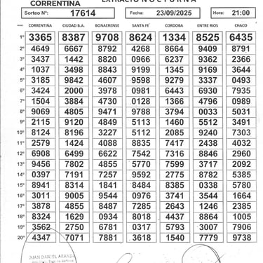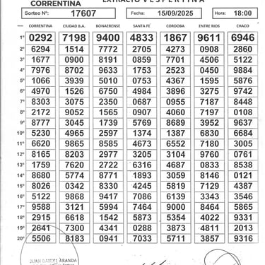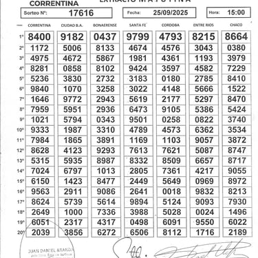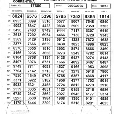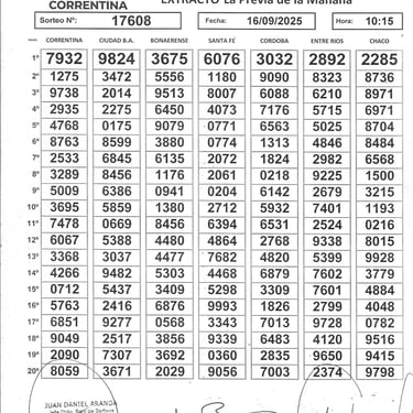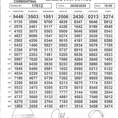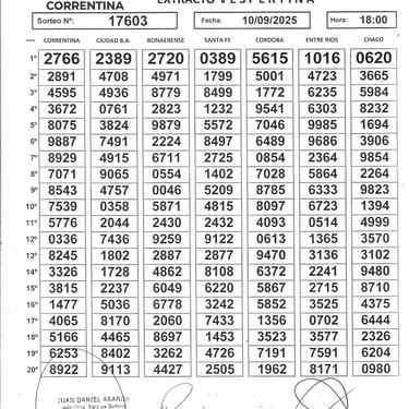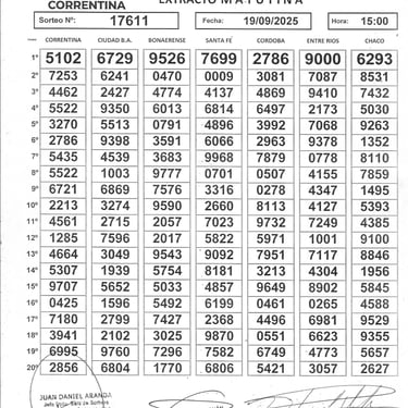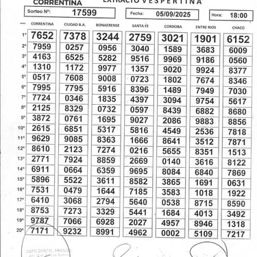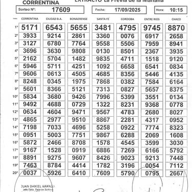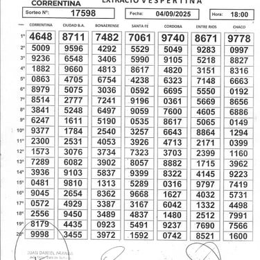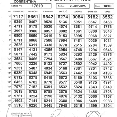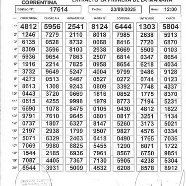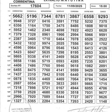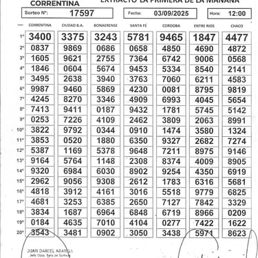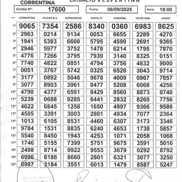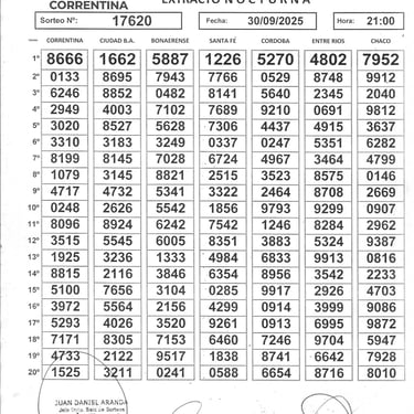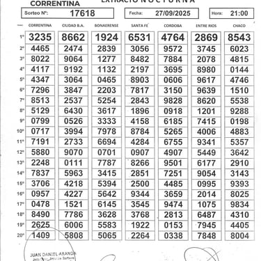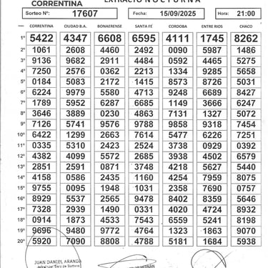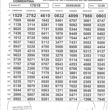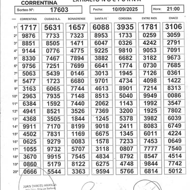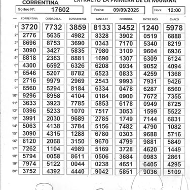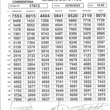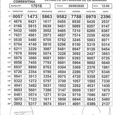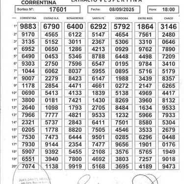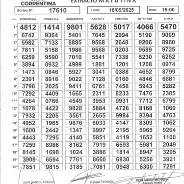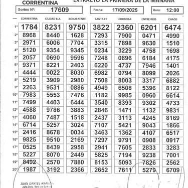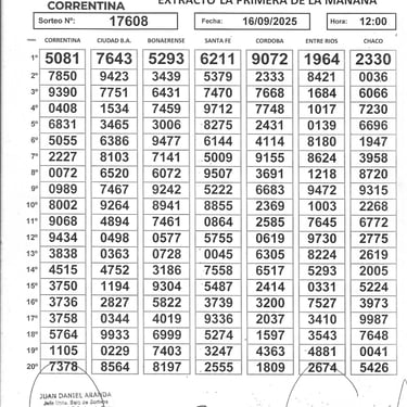 Resultados de Quiniela y Otros Juegos 20/09/2025