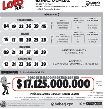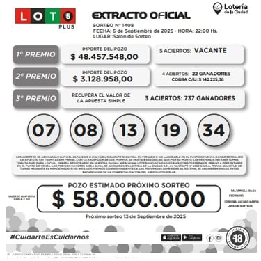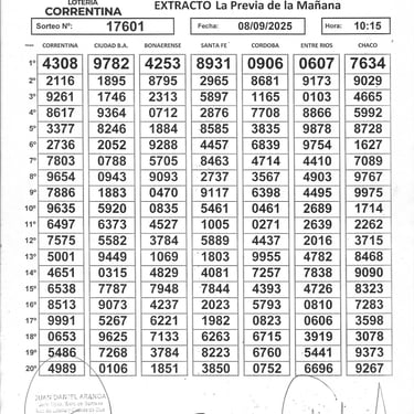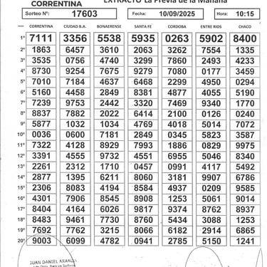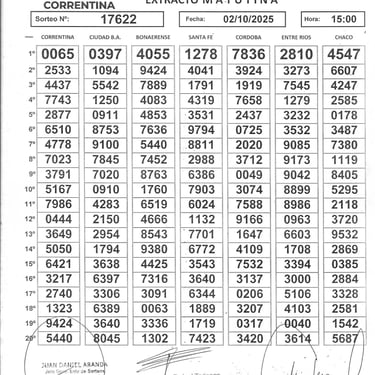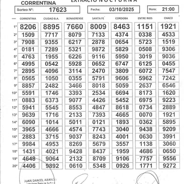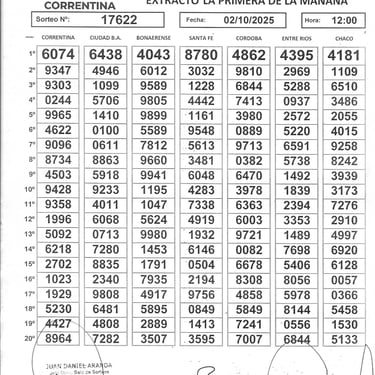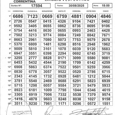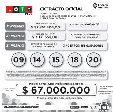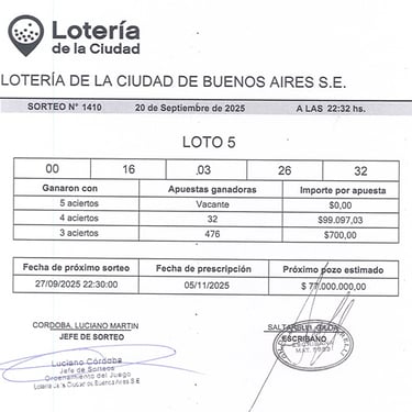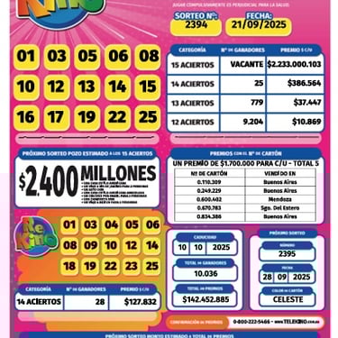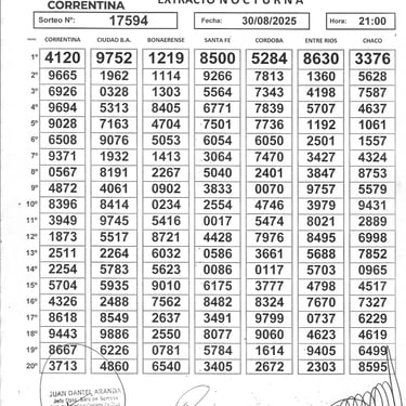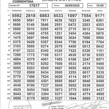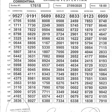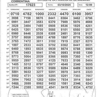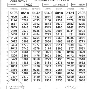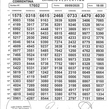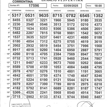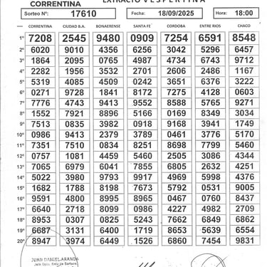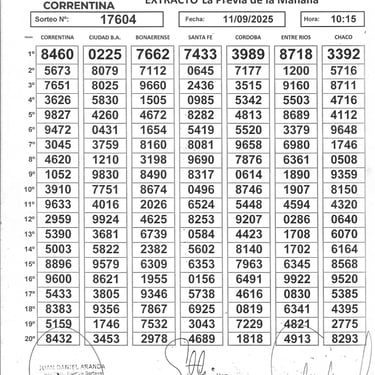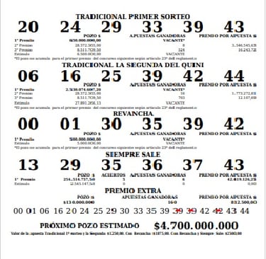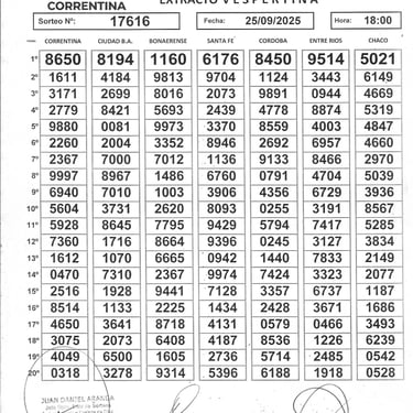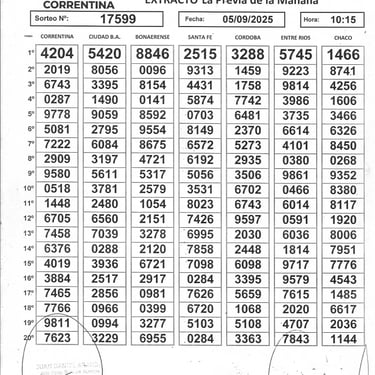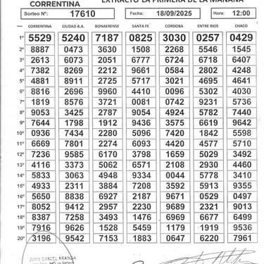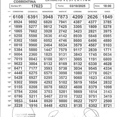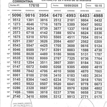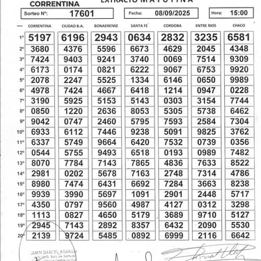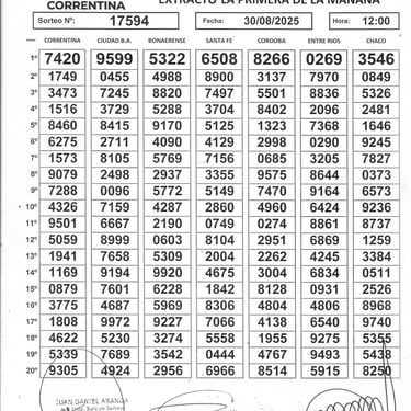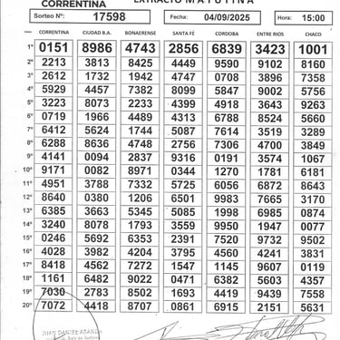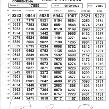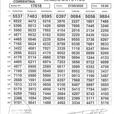 Resultados de Quiniela y Otros Juegos 20/09/2025