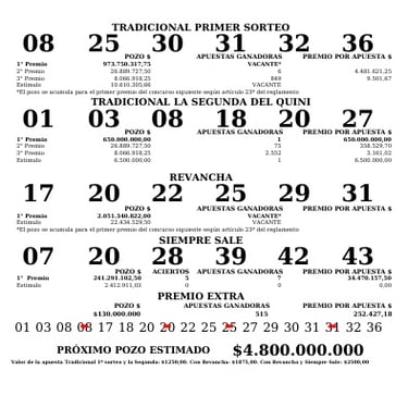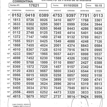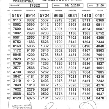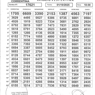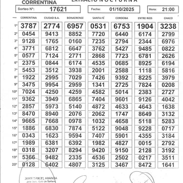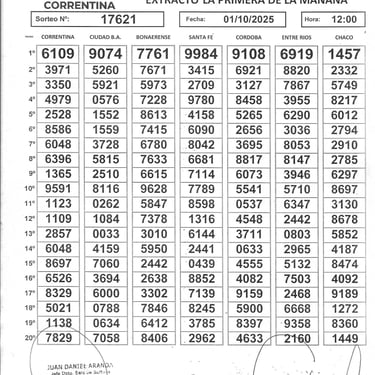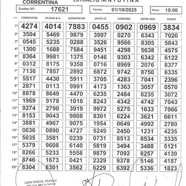 Resultados de Quiniela y Otros Juegos 01/10/2025