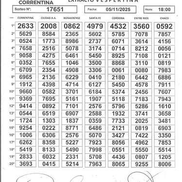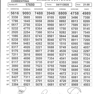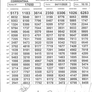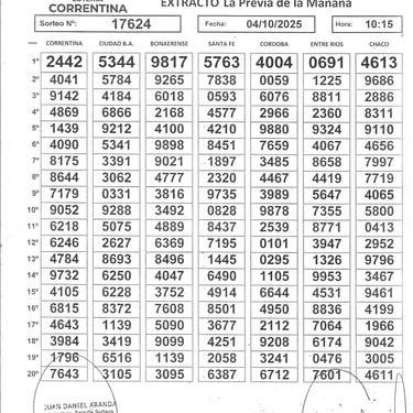 Resultados de Quiniela y Otros Juegos 04 y 05/10/2025