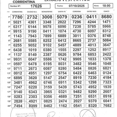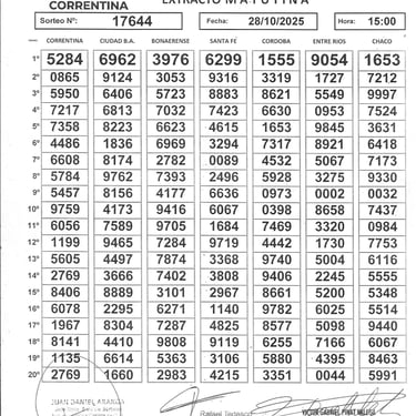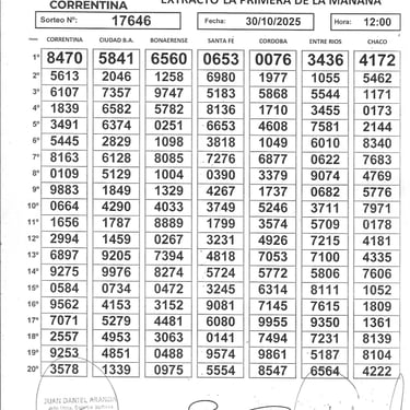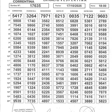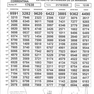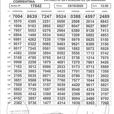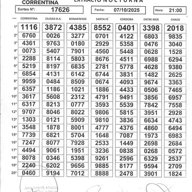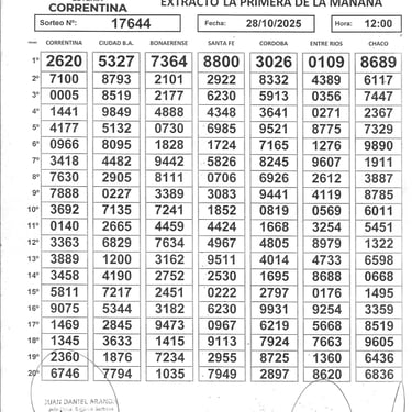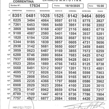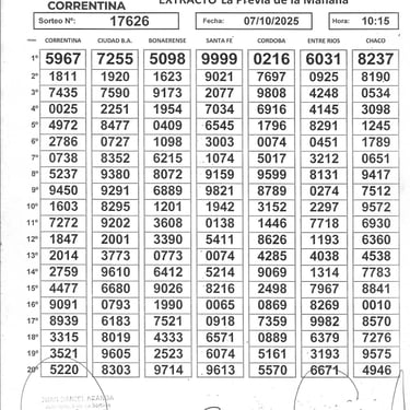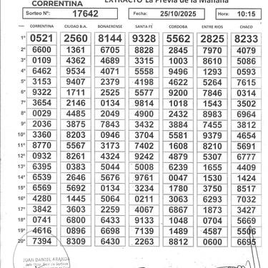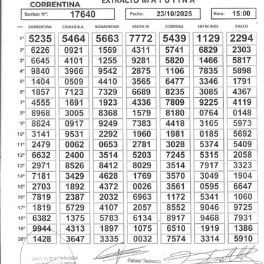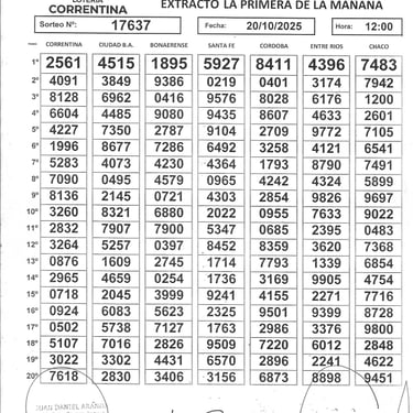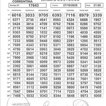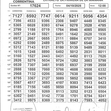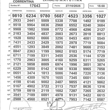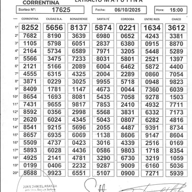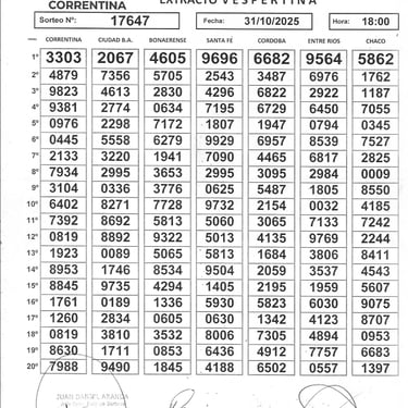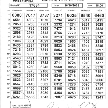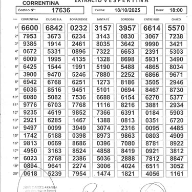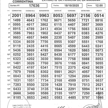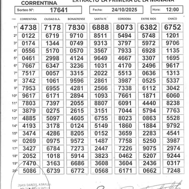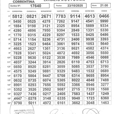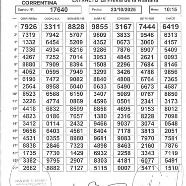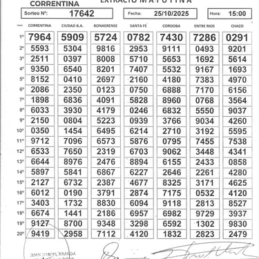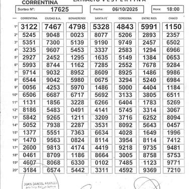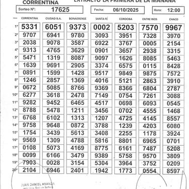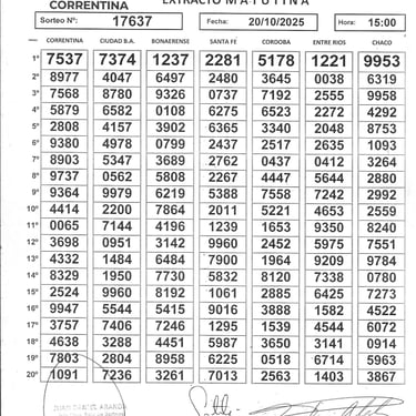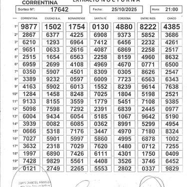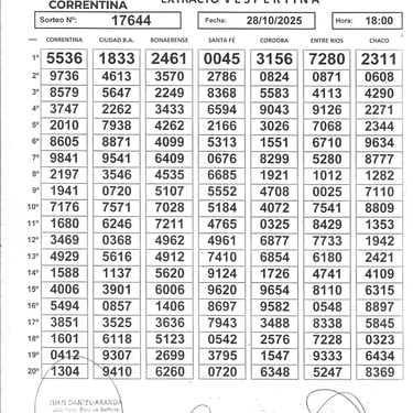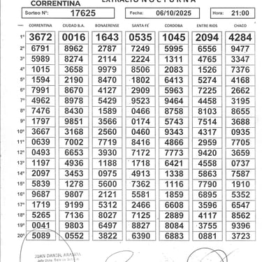 Resultados de Quiniela y Otros Juegos 25 y 26/10/2025