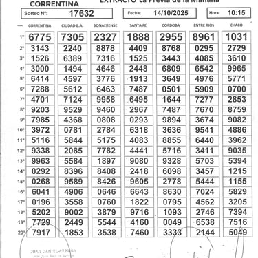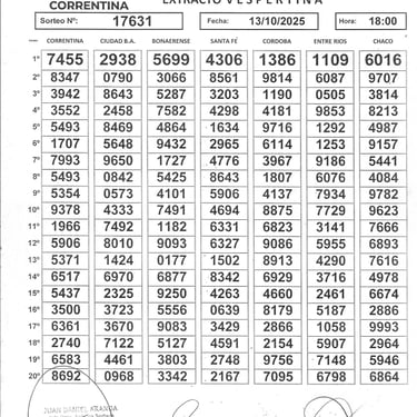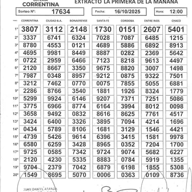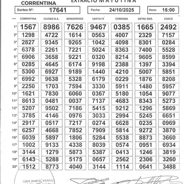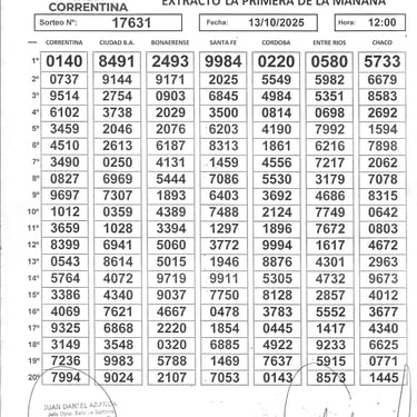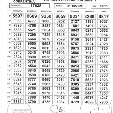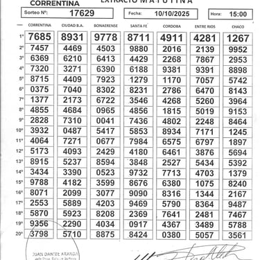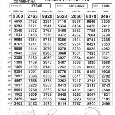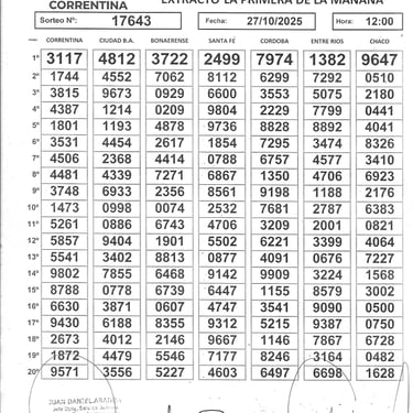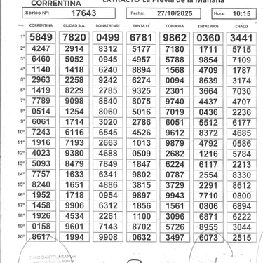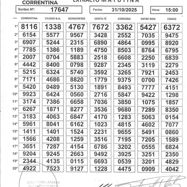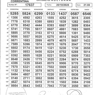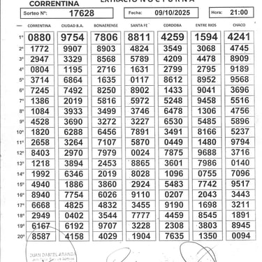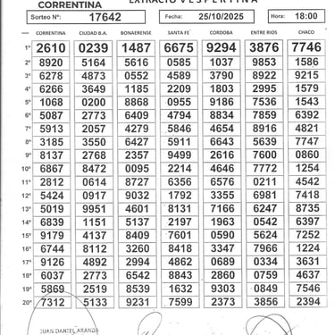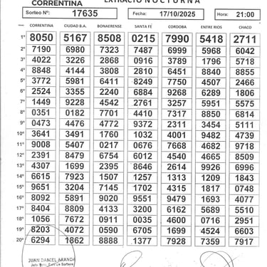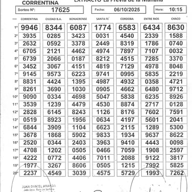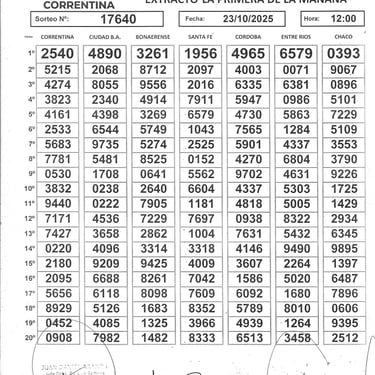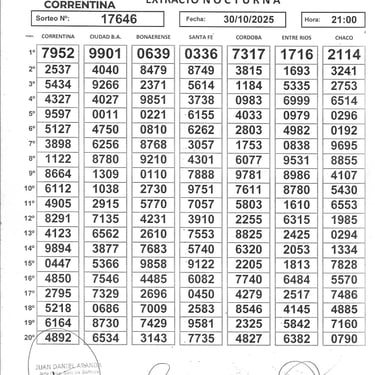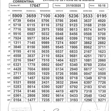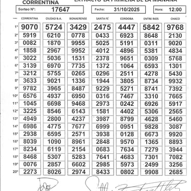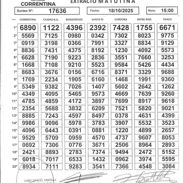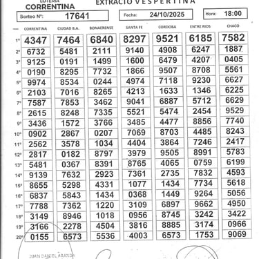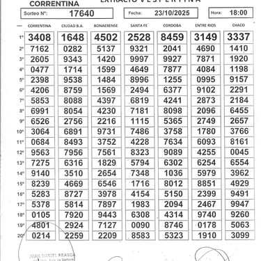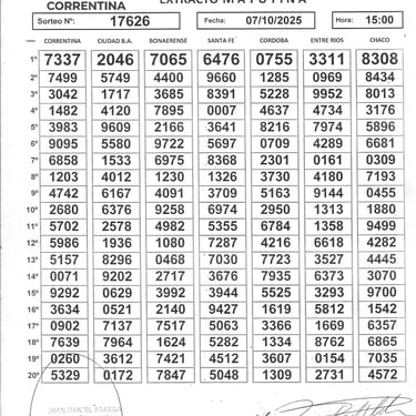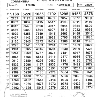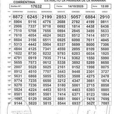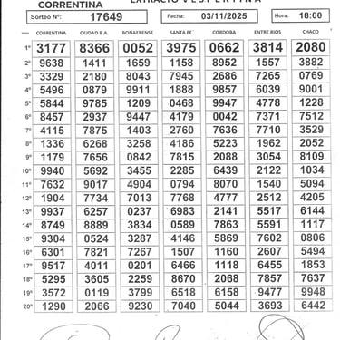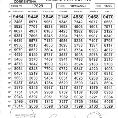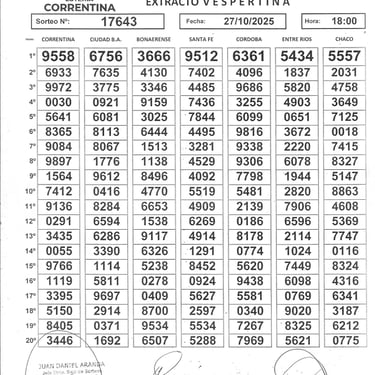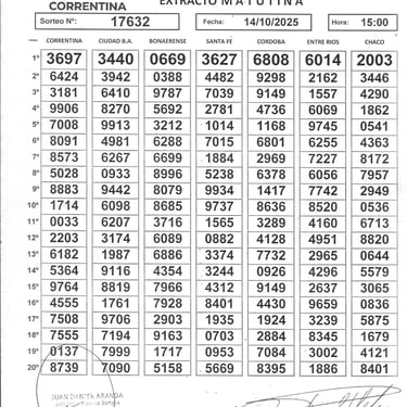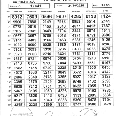 Resultados de Quiniela y Otros Juegos 25 y 26/10/2025