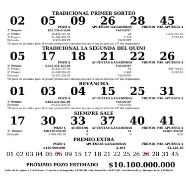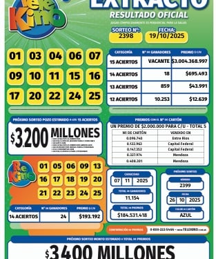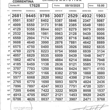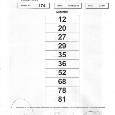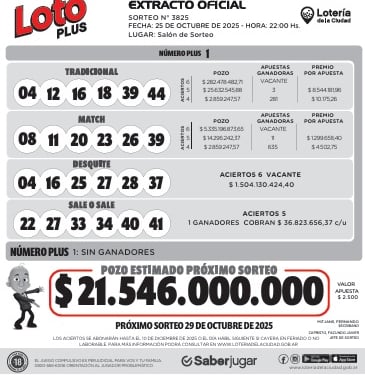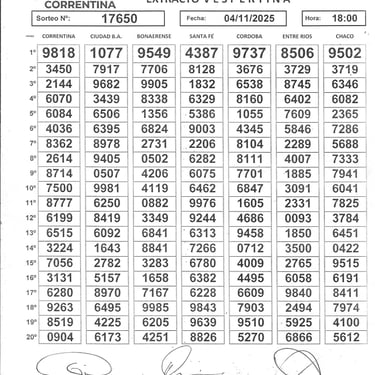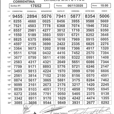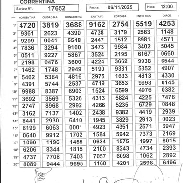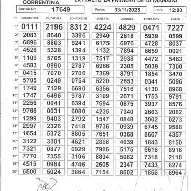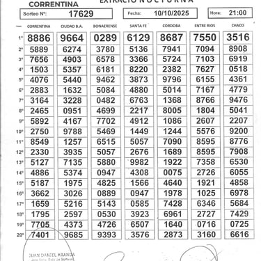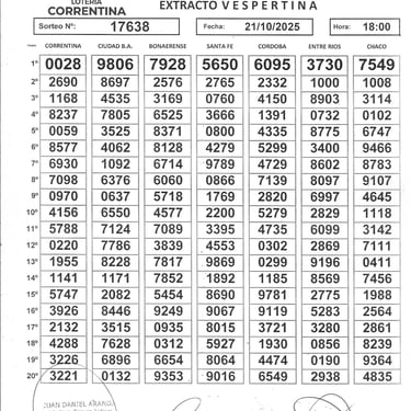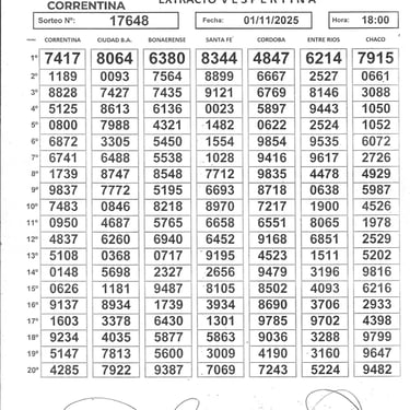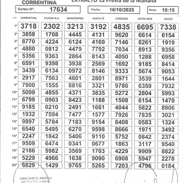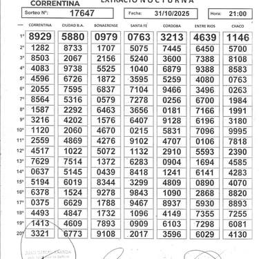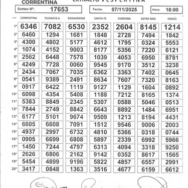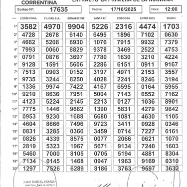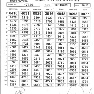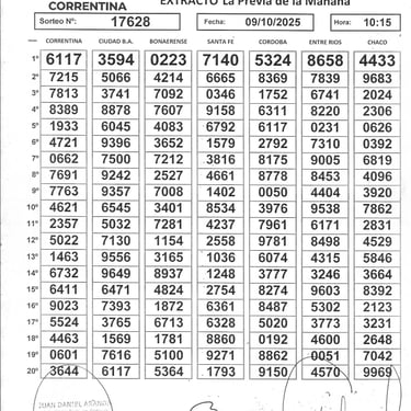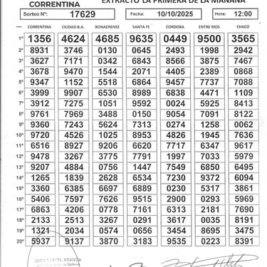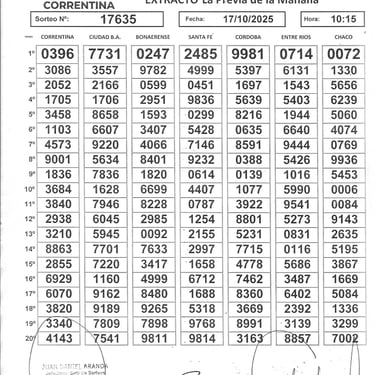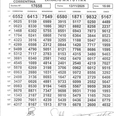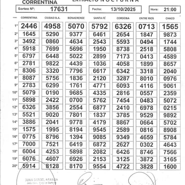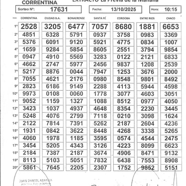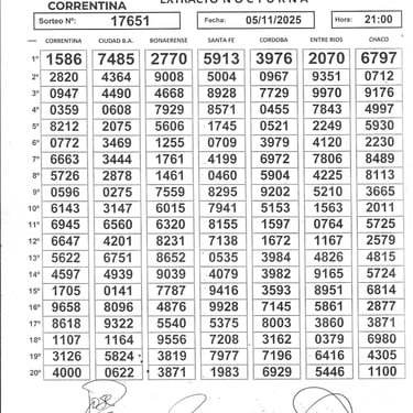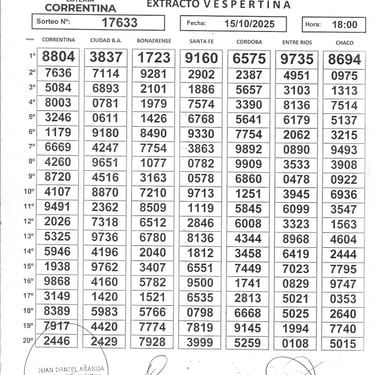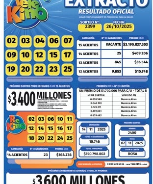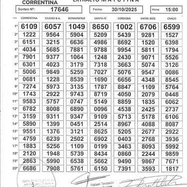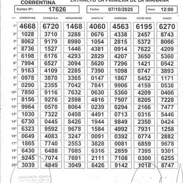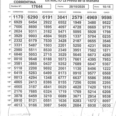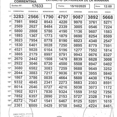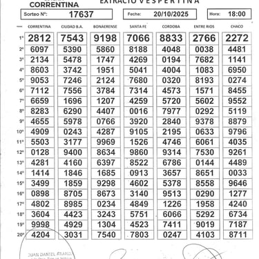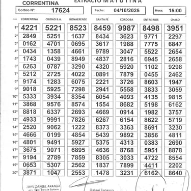 Resultados de Quiniela y Otros Juegos 25 y 26/10/2025