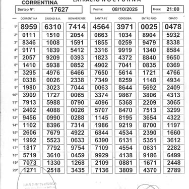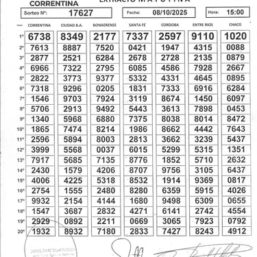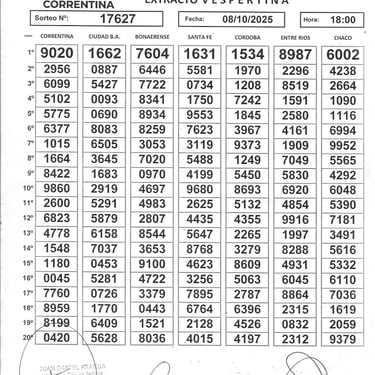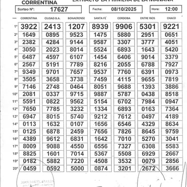Resultados de Quiniela y Otros Juegos 08/10/2025