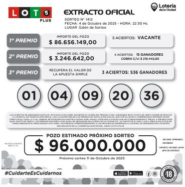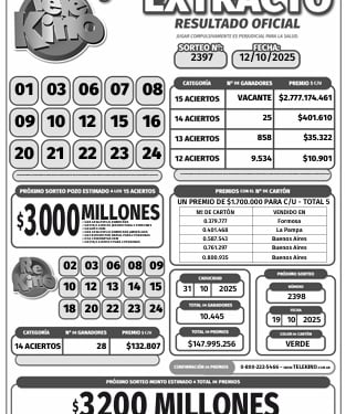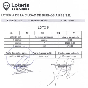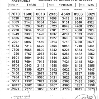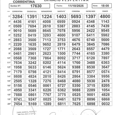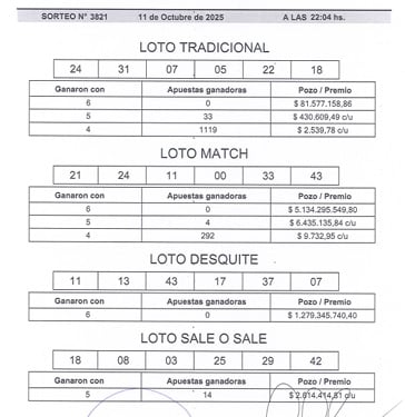 Resultados de Quiniela y Otros Juegos 11 y 12/10/2025