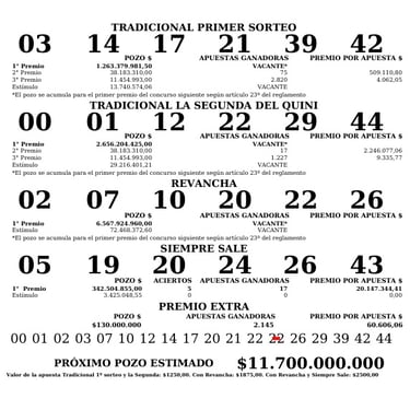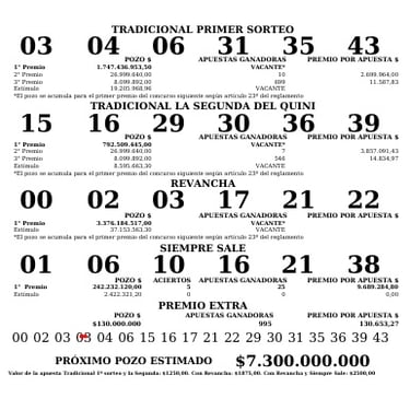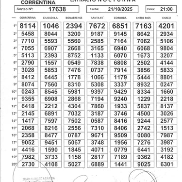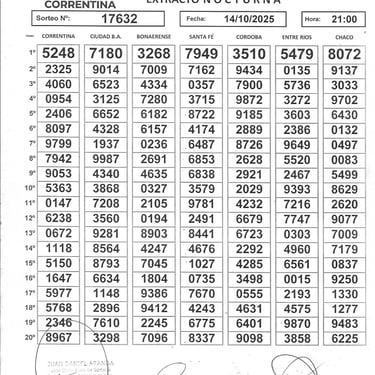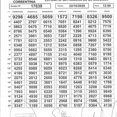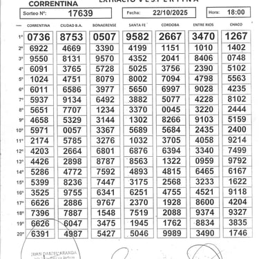 Resultados de Quiniela y Otros Juegos 22/10/2025