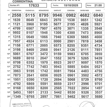 Resultados de Quiniela y Otros Juegos 15/10/2025