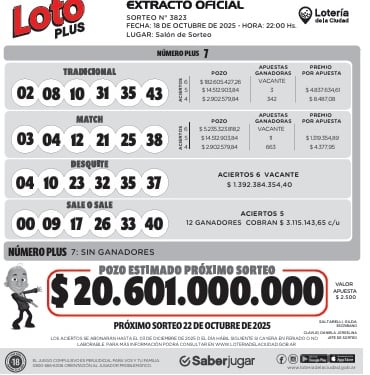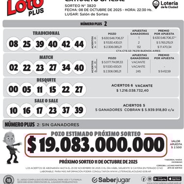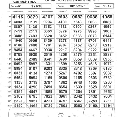 Resultados de Quiniela y Otros Juegos 18 y 19/10/2025