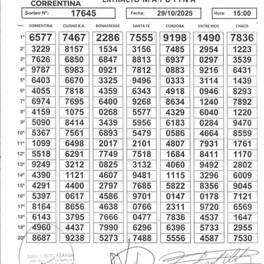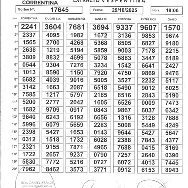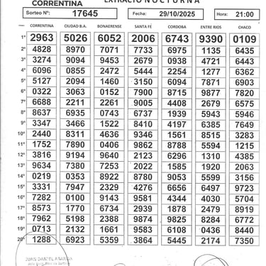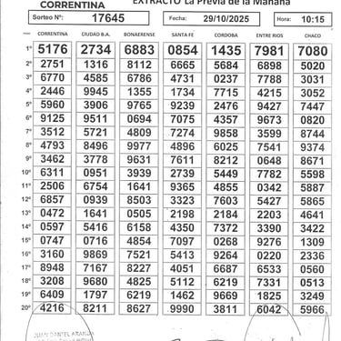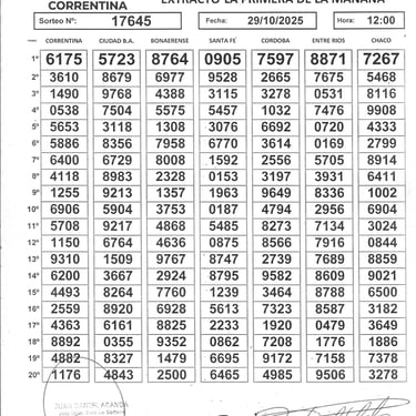 Resultados de Quiniela y Otros Juegos 29/10/2025