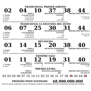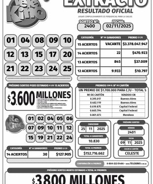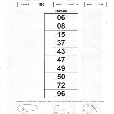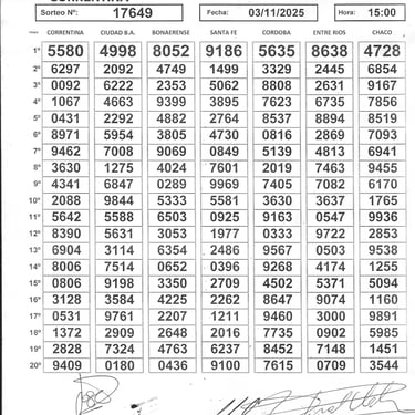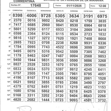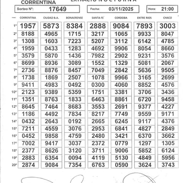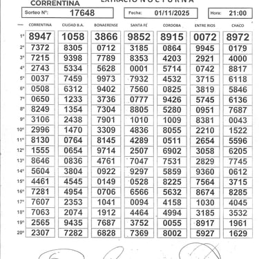 Resultados de Quiniela y Otros Juegos 01 y 02/11/2025