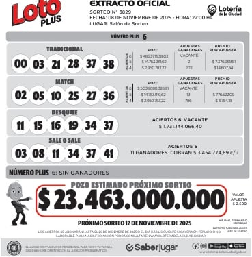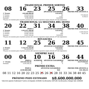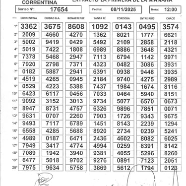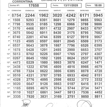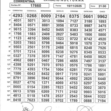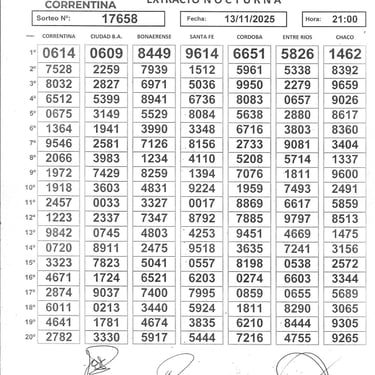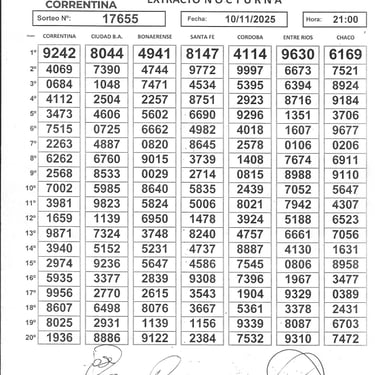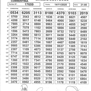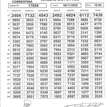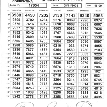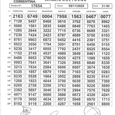 Resultados de Quiniela y Otros Juegos 08 y 09/11/2025