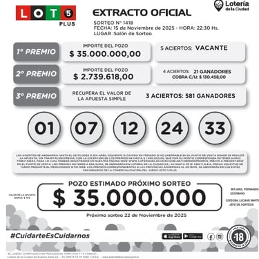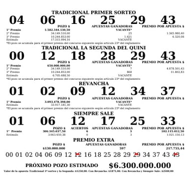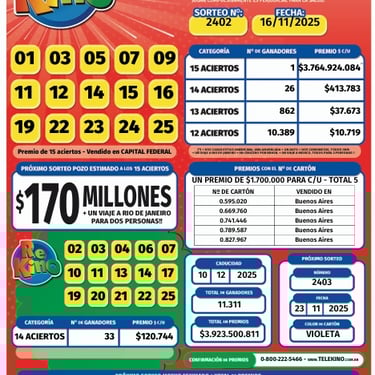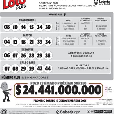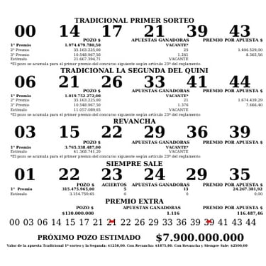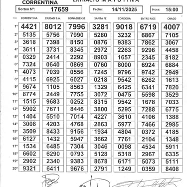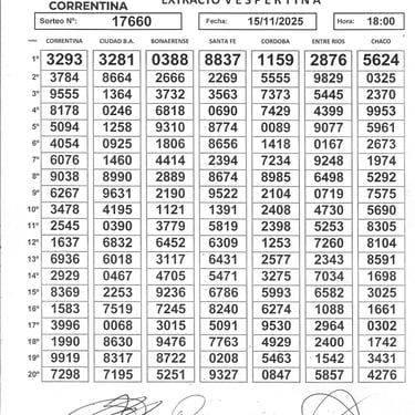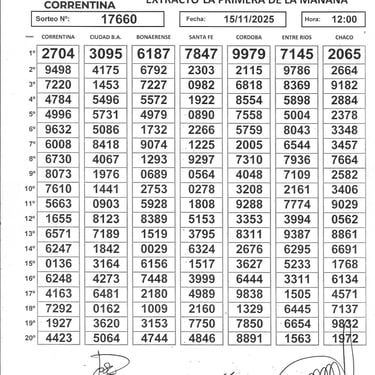 Resultados de Quiniela y Otros Juegos 15 y 16/11/2025