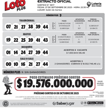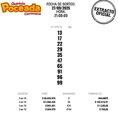 Resultados de Quiniela y Otros Juego 27 y 28/09/2025